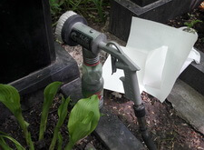 Пескоструйным пистолетом наносим надпись, удаляем оставшуюся плёнку.